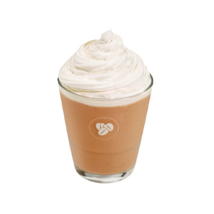 İmza Espresso istifadə edilərək hazırlanmış, vanil siroplu yumşaq süd ilə birləşdirilmiş və üzərinə karamel şirniyyatı ilə zərif şirniyyat serpilmişdir.